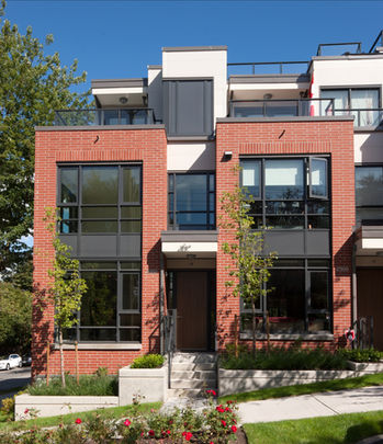 Located on West 7th Avenue at Spruce Street, across Choklit Park, Fairview Green offers residents sweeping views of False Creek and beyond. Nine boutique townhomes span over three levels, with three or more bedrooms each and their expansive roof decks and patios are pleasant retreats in this pedestrian- and bike-friendly neighbourhood. Underground parking is directly accessible from every townhome unit.